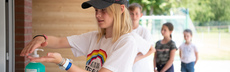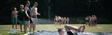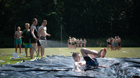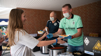 Immer noch viel Arbeit! Vor allem die Essensausgabe wurde durch Corona schwierig. Das Frühstück ist abgepackt, das Mittagessen darf nicht mitten auf den Tisch wie sonst, sondern muss durch helfende Händer ausgegeben werden. Der Vorstand springt ein und erweitert das Ehrenamtsprofil um die Postion "Küchencrew". Pro Zelt dürfen zwei Kinder wohnen. Die Bezugsgruppen sind festgelegt: je sieben Kinder und ein*e Betreuer*in, die beispielsweise auch gemeinsam zum Waschraum gehen. Für die Eltern gibt es Besucherlisten. Spiele unter freiem Himmel sind kein Problem.