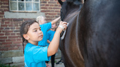 "Wir sind im Sommer viel draußen und gehen auch mit den Kindern spazieren. Manchmal legen wir im Wald Naturbilder. Und natürlich ist das Pferd ein Naturelement. Kinder fühlen hier Empfindsamkeit für das Lebewesen. Auf einem Pferd werden ganz viele Dinge angesprochen, alle Sinne. Es ist Aufgabe eines Vereins, die ganze Person zu sehen.